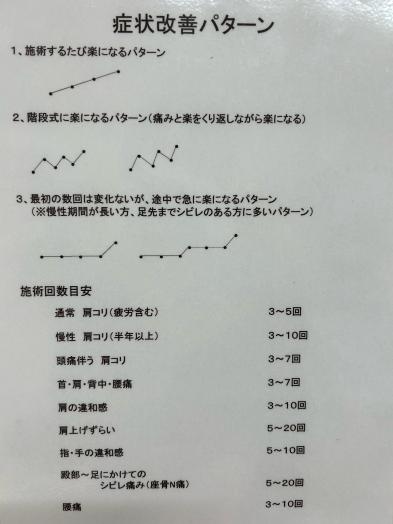 当院の来院頻度①についての続編として、 今回は、症状別の来院頻度と主な回数についてご紹介したいと思います。 腰痛、肩こり、膝痛をはじめとした整形疾患の症状改善にはいくつかのパターンがあると思います。 こちらの画像を参考までに見て下さい。 ![]() 当院での施術をお考えの方は、症状によってこのような感じの来院頻度を目安にしてもらえればと思っています。 これはあくまで目安ですので短期間で好結果を生む場合もありますし、予想以上に長期間、来院頻度を要する場合もございます。 ただ当院のお客様は、症状が落ち着いてもまた同じ症状を繰り返さないために定期的にメンテナンスされている方が多くいらっしゃいます。 その際も当院が来院を強要することはございませんのでご安心ください。 当院にご興味のある方、施術希望の方はご連絡下さい。 □■□■□■□■□■□■□■□■□■□■□■□■□■□■□■□■□■□ ◆肩こり、不定愁訴、慢性腰痛、膝痛などでお悩みの方 自費専門百彩整骨院ホームページ URL 施術のご予約は、LINEからが便利です まずは、下記のLINE「友だち追加」からID検索してお友達登録してね。 QRコード ![]()